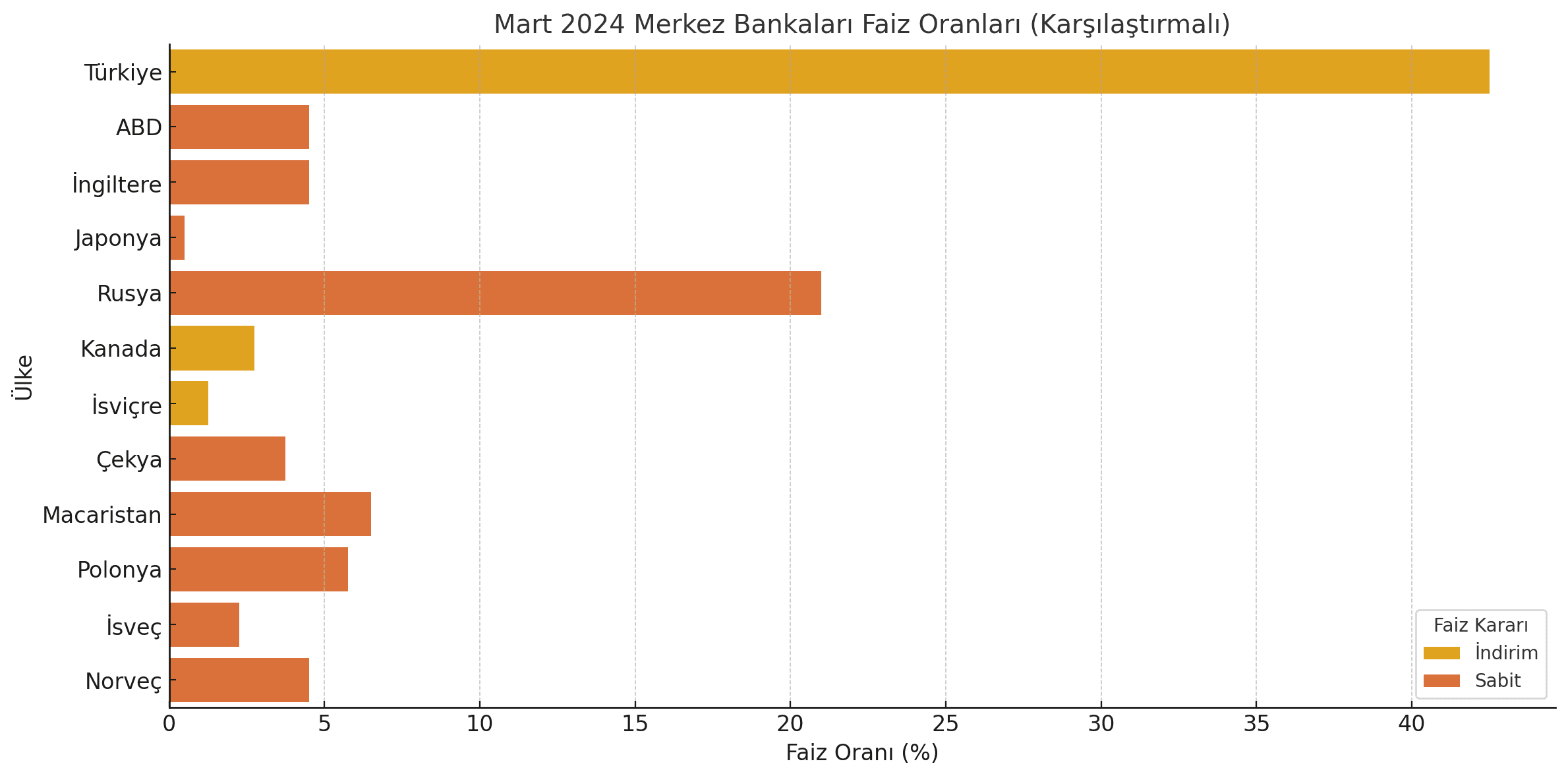 - Çekya, Macaristan, Polonya, İsveç, Norveç: Mart ayında faiz oranlarında değişikliğe gitmeyerek mevcut seviyeleri korudular.
