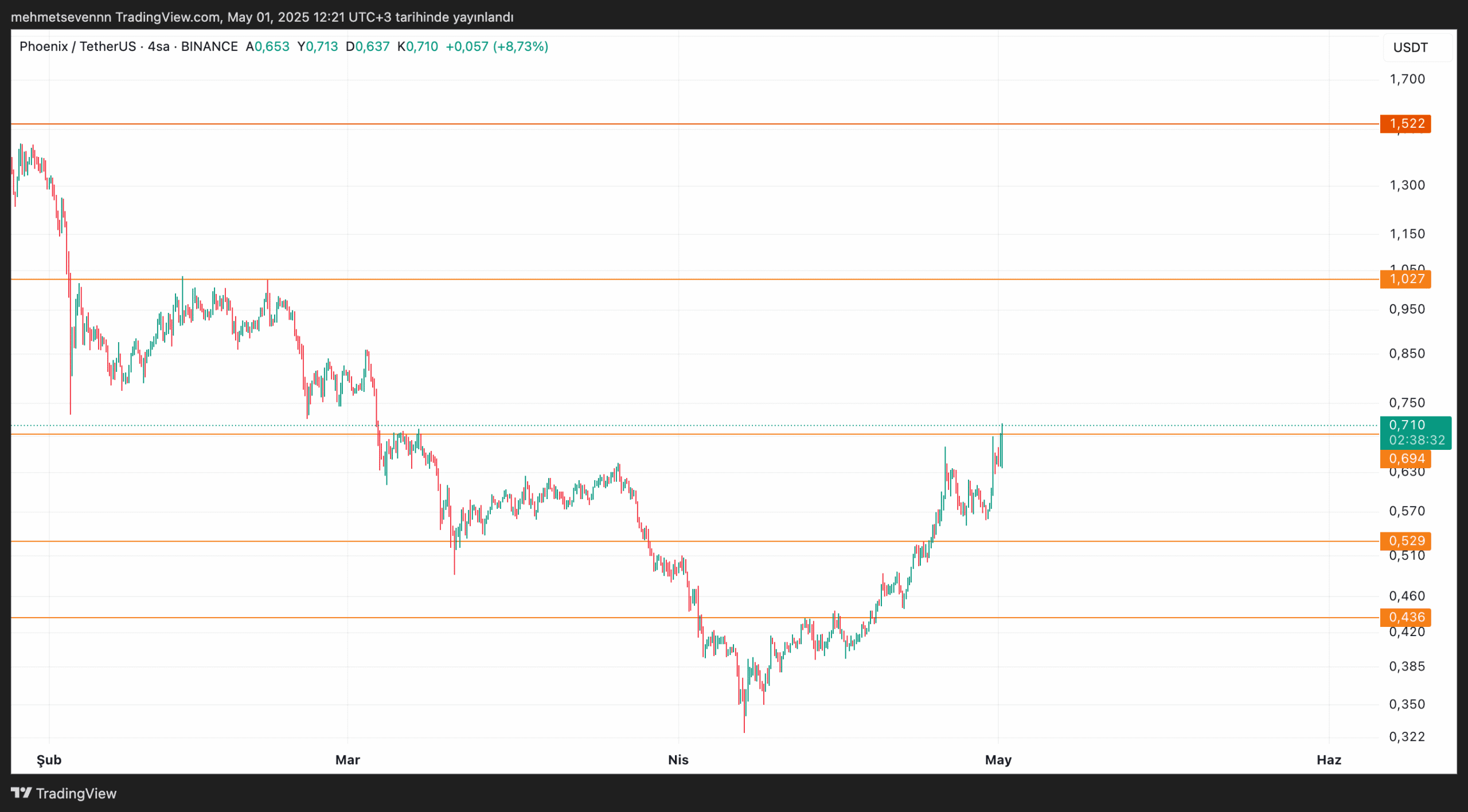 - 0,694 USDT seviyesi üzerinde kalıcılık sağlanarak ivme kazanıldı.